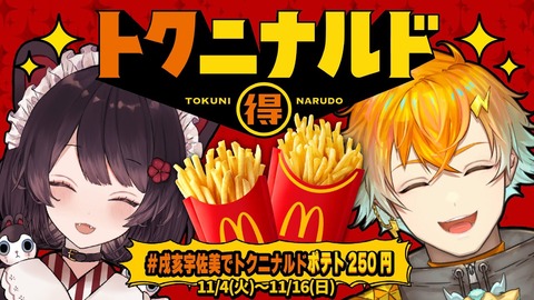 【にじさんじ】宇佐美・戌亥、本日21時に日本マクドナルドのPR配信『ダブチいにゅいかわいい』