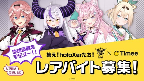 【ホロライブ】holox、タイミーでレアバイト募集 きみも秘密結社の一員になりholoXの名を轟かせよう