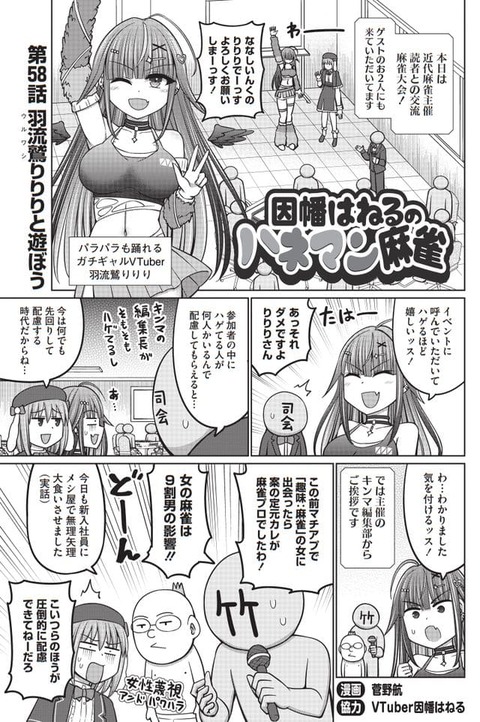 【ななし】明日発売の近代麻雀「因幡はねるのハネマン麻雀」、ゲストで羽流鷲りりりが登場『ななしのデカパイギャル』
