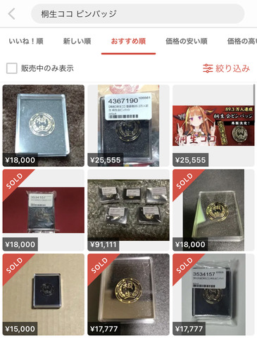 【ホロライブ】桐生ココピンバッジ、転売され始める