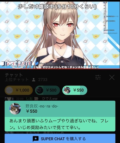 【にじさんじ】スパチャ君(550円)「あんまり頭悪いふりムーブやり過ぎないでね」