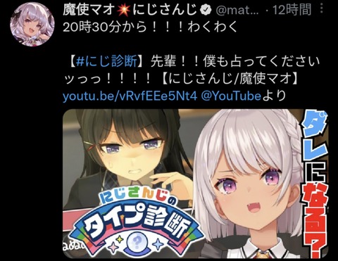 【にじさんじ】実は昔ツイッタで刀リリセックス!って叫んでたんだけど今でもリリにブロックされてるわ