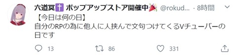 【Vtuber】某個人V「(7月4日は)自分のRPの為に他人に人挟んで文句つけてくるVチューバーの日です」