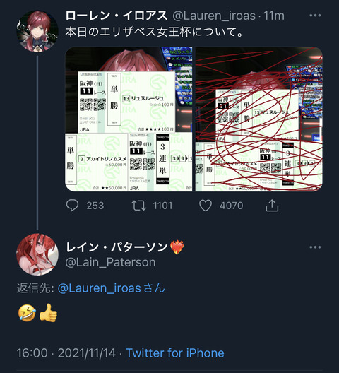 【にじさんじ】パタ姐、ローレンの馬券を煽ってしまうwww