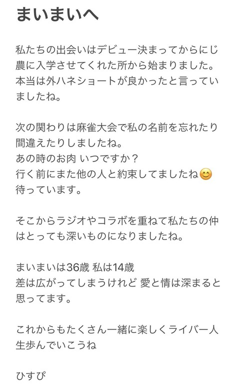 【にじさんじ】北小路ヒスイのまいまいへの手紙が泣ける・・・