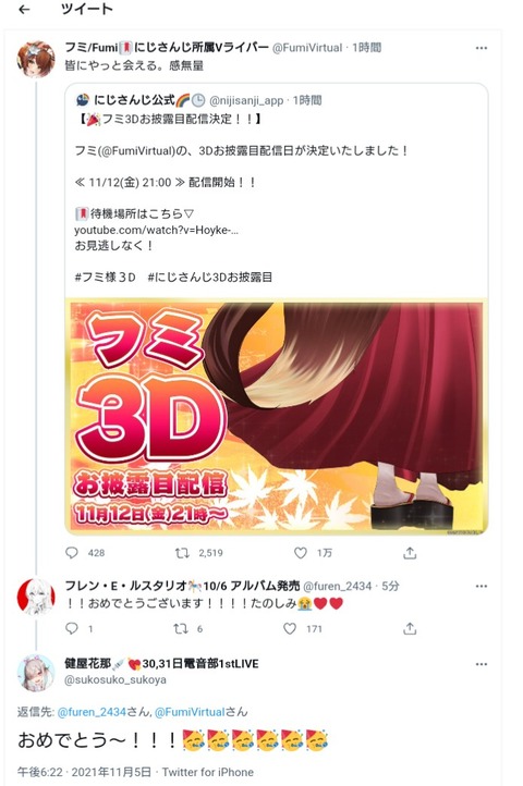 【にじさんじ】フミのツイートにフレンが巻き込みリプをしてしまう