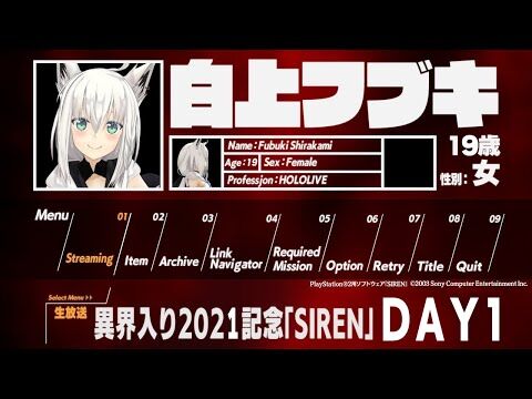 【ホロライブ】フブキ、『SIREN』クリア耐久放送決定www