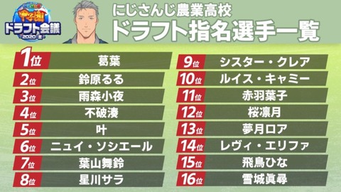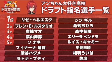 【画像】にじさんじ甲子園ドラフト2021の結果がこちらww
