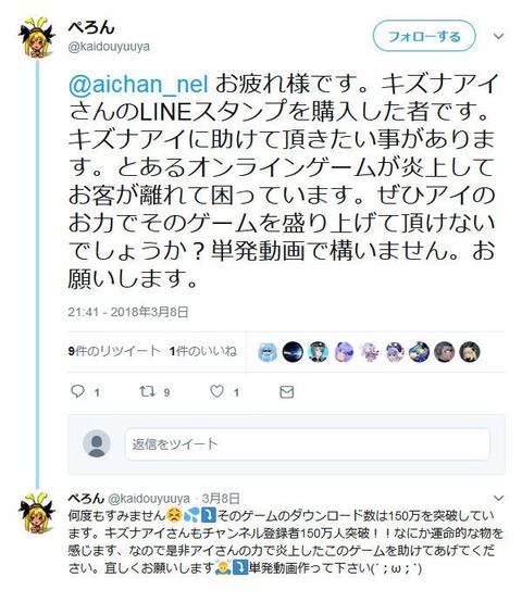 【画像】キズナアイ、PSO民に絡まれるwww