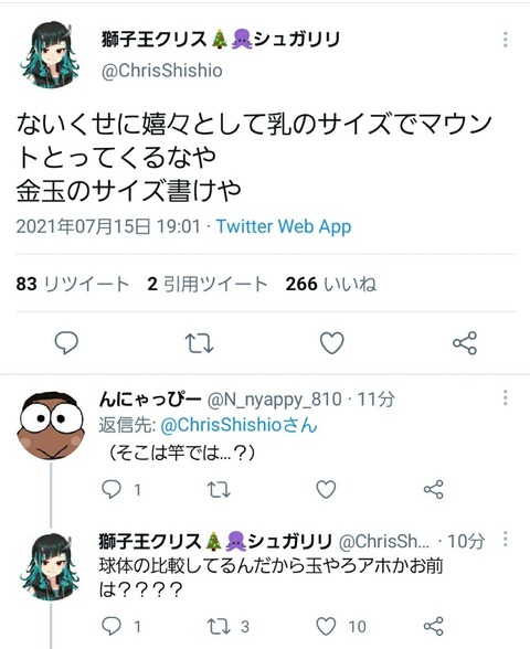 【画像】獅子王クリス、なんJ民みたいな言動をしてしまうwww