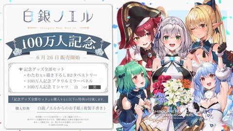 【ホロライブ】白銀ノエル 100万人記念グッズ発売決定www