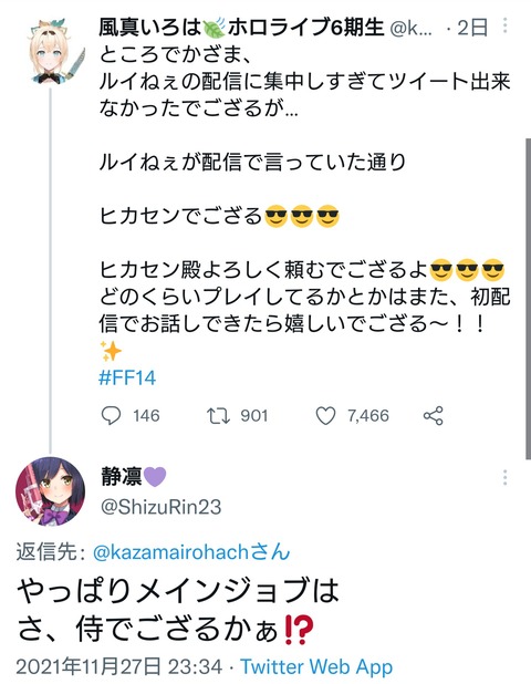 【ホロライブ】風真いろはの好きなゲームがFF14と聞いて静凛喜ぶwww