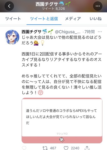 【にじさんじ】西園チグサさん「APEX関係でSNS失敗しまくってる気がする」