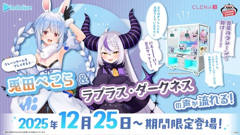 【ホロライブ】ホロライブ×バンプレスト、ホロメンの音声が流れるクレーンゲーム筐体が登場!12月25日(木)から期間限定登場