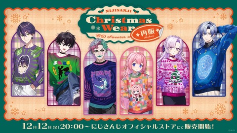 【にじさんじ】『にじさんじ Christmas Wear ~CD Sweater Style~』再販決定!本日20時から再販売開始『ミランのやつは小学生だったらかっこいいと思って買う』