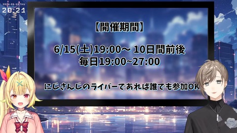 【にじGTA】説明会まとめ『キャラRPじゃなく役職RP』『役職:救急隊、警察、ギャング、飲食店、メカニック』『開催期間:6/15(土)~10日間前後、毎日18:00~ニュース配信、19:00~27:00鯖開放』