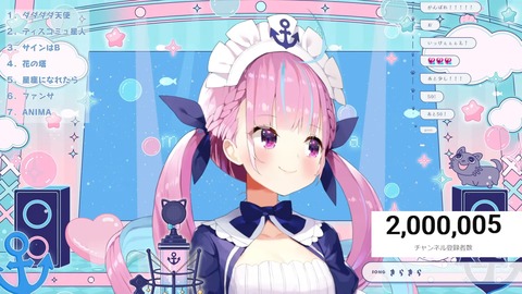 【ホロライブ】あくあ、20時から登録者200万人耐久