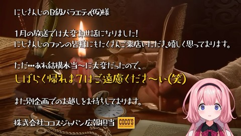 【にじさんじ】にじバラ、ココスからNGで草「しばらく帰れま7はご遠慮くださ~い笑」