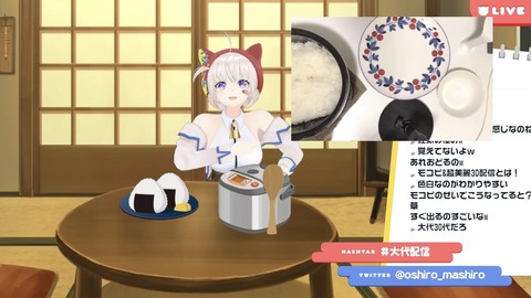 【あおぎり高校】大代、自宅mocopiを最大限に活用した脇でおにぎりをにぎり自らで食べる配信「柔軟剤の香りがする」