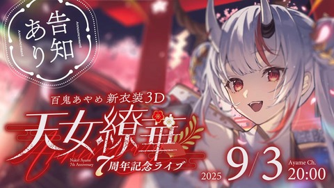 【ホロライブ】余、9/3(水)20時~3D新衣装&7周年記念ライブだ余!