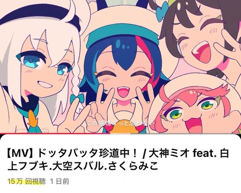 【ホロライブ】ミオしゃ、「ドッタバッタ珍道中!」の再生数が15万再生を突破「いっぱい聞いてくれてありがと~!!!!うれしいです🥳🫶」