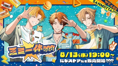 【にじさんじ】宇佐美、北見、伏見の『三ミ一体!!!!!!』グッズの販売が決定!【本日8/13(水)19:00~】