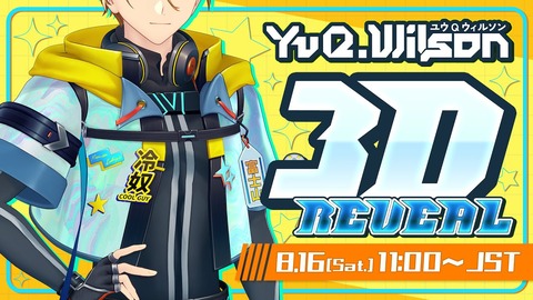 【にじさんじEN】ユウ Q ウィルソンの3Dお披露目、8/16(土) 11:00に配信『ENがどんどん3Dになってくのええなあ』