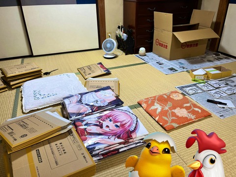 【VTuber】千羽師匠、実家の居間で自分の抱き枕カバーの梱包作業『なんて生活感を感じる部屋なんや』『ワイの実家のような家』