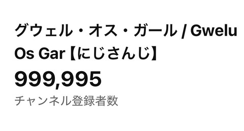 【にじさんじ】グウェル、チャンネル登録者100万人を下回る→「なんと、また100万人耐久配信が出来るみたいです」