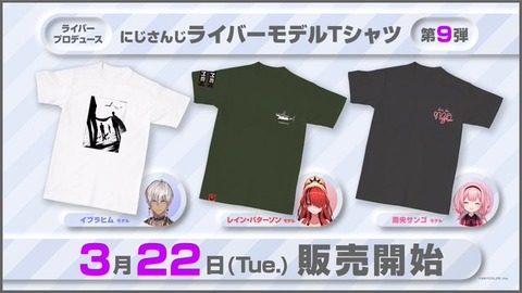 【にじさんじ】ライバー本人がプロデュースしたにじT第9弾発売決定!『ンゴのデザインTシャツの裏側やばそうで草』【3/22(火)12:00~】