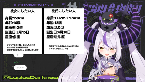 【ホロライブ】ラプ様が彼女・彼氏にしたいタイプがこちらです『159cm16歳O型3月15日誕』『174cm18歳O型4月30日誕』