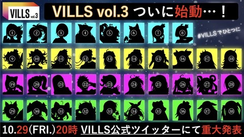 【VTuber】『VILLS vol.3』の出演者(38名)のシルエットが公開!集合知により全ての出演者が正解が導き出される