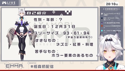 【VTuber】新人エマ・シュエットのスリーサイズがこちらです『これでヒップ94は詐欺でしょ』