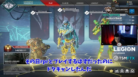 【VTuber】話題のAPEX海外プロrpr、叶のコメ欄が早すぎて上手くスパチャ送れなくて怒りの台パン