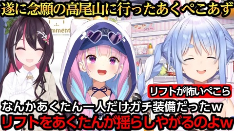 【ホロライブ】ぺこら・あくあ・あずきち、遂に高尾山行ってきたんか『ガチ装備あくたん草』