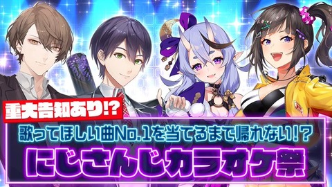 【にじさんじ】重大告知ありカラオケ祭、メンツ的に歌謡祭の告知か「8日がカラオケ…ま、歌謡祭の」