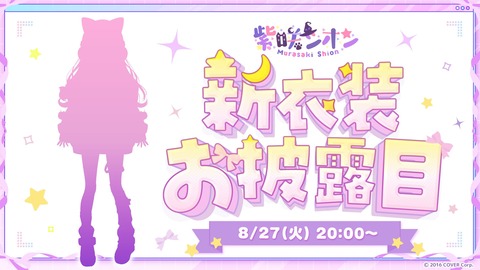【ホロライブ】シオンの今日20:00~新衣装お披露目、8月31日21:00~に延期に