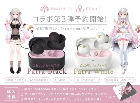 【VTuber】パトラコラボのASMR特化イヤホン予約開始!新機能「パトラと添い寝モード」搭載