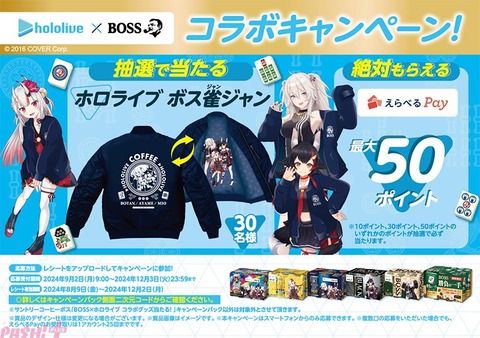 【ホロライブ】BOSS×ホロライブコラボ「”ボス雀ジャン”が対象の6缶パック購入で当たるキャンペーン」
