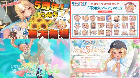 【ホロライブ】フレア重大告知『LINEスタンプvol2リリース』『新オリ曲!マーブル冴える』『活動5周年記念グッズ』