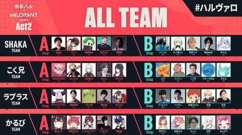 【VALORANT】ハルヴァロact2チーム発表!渋ハルクソ頑張ったなって感じのメンツで草