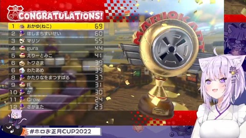 ホロお正月CUPつよ杯結果!優勝は猫又おかゆ!星街すいせい2連覇ならず!