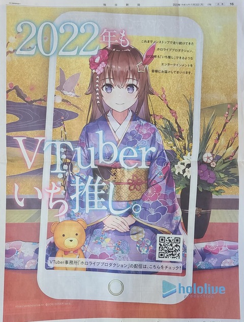 【朗報】新聞にホロライブの一面カラー広告が載りました!