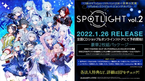 【朗報】スバル、ノエル、るしあの参加するコンピレーションアルバム「SPOTLIGHT vol.2」発売決定!